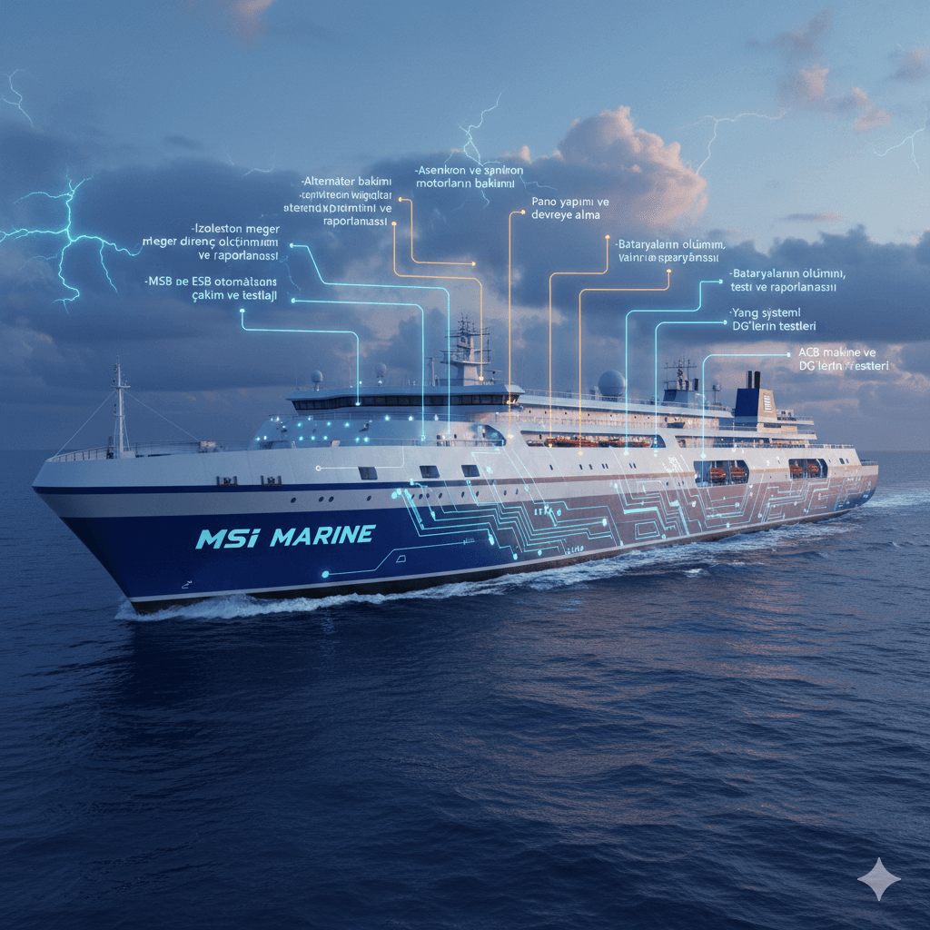 MSİ Marine Elektrik Elektronik olarak, gemi elektrik sistemleri alanında 30 yılı aşkın tecrübemizi 2023 yılında kurduğumuz şirketimizin çatısı altında bir araya getirdik. Denizcilik sektöründe güvenilir, hızlı ve profesyonel çözümler sunmayı misyon edinen firmamız; kalite, teknik yeterlilik ve müşteri memnuniyetini ön planda tutarak hizmet vermektedir. MSİ Marine olarak hedefimiz; uzun yıllara dayanan teknik tecrübemizi modern yaklaşımlarla birleştirerek, her projenin güvenli, verimli ve uluslararası standartlara uygun şekilde tamamlanmasını sağlamaktır.